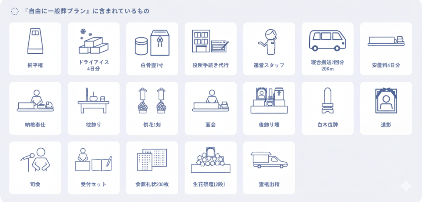 お葬式に必要なものが含まれているお得なプラン 自由に一般葬プラン  |