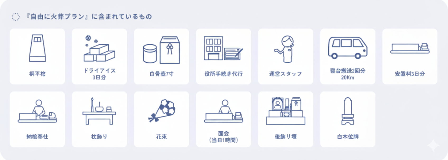 式は行わずお別れの時間を大切に過ごせるプラン 自由に火葬プラン |